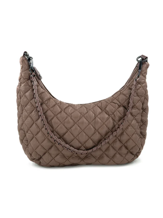 Quilted Hobo Bag in Brown