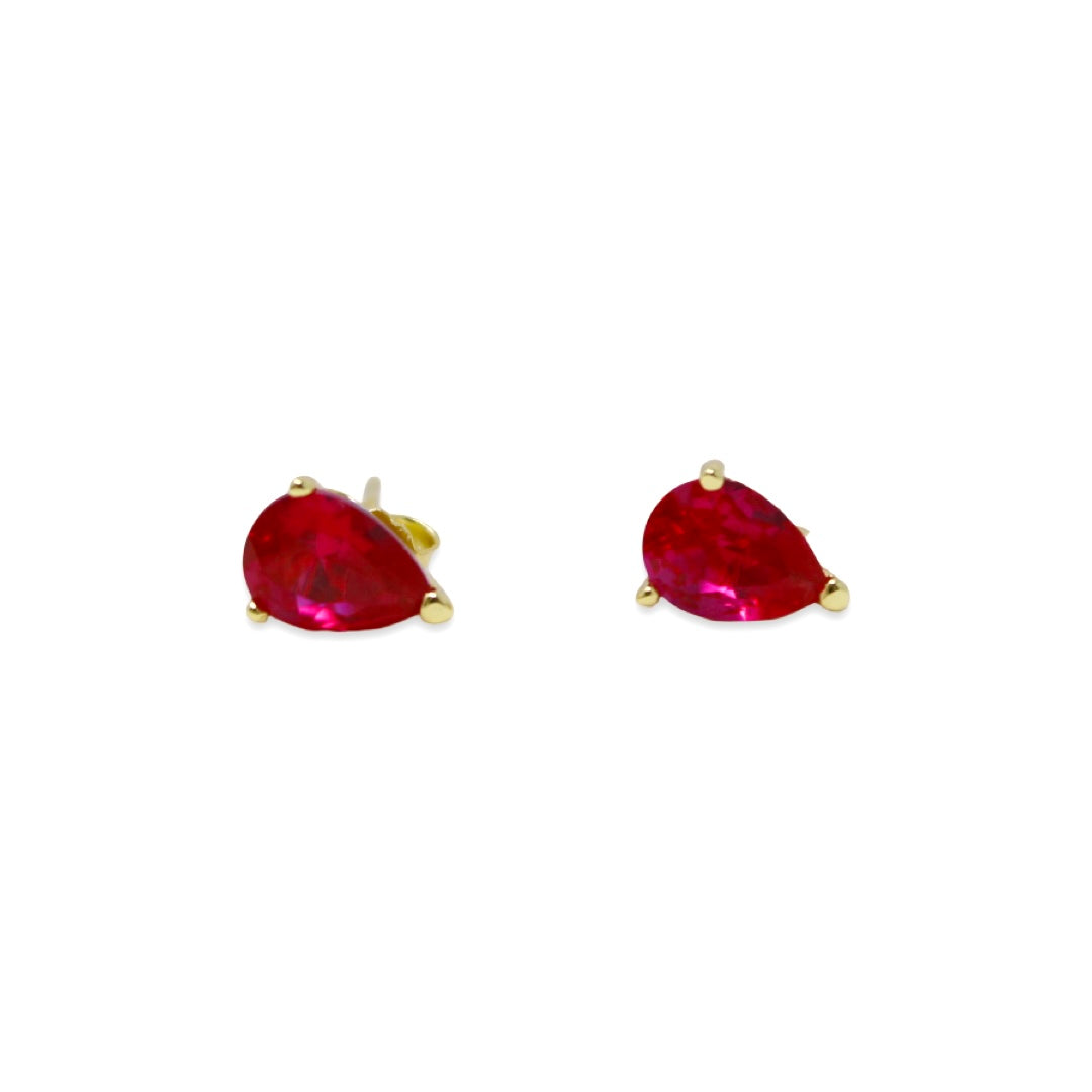 Pear Studs in Gold with Ruby Stones
