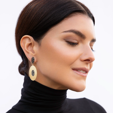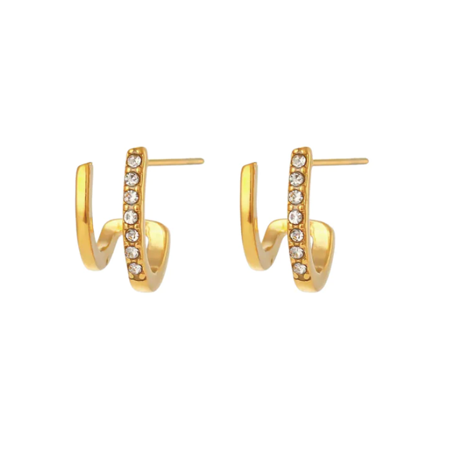 Double Oval Crystal Drop Earring in Gold