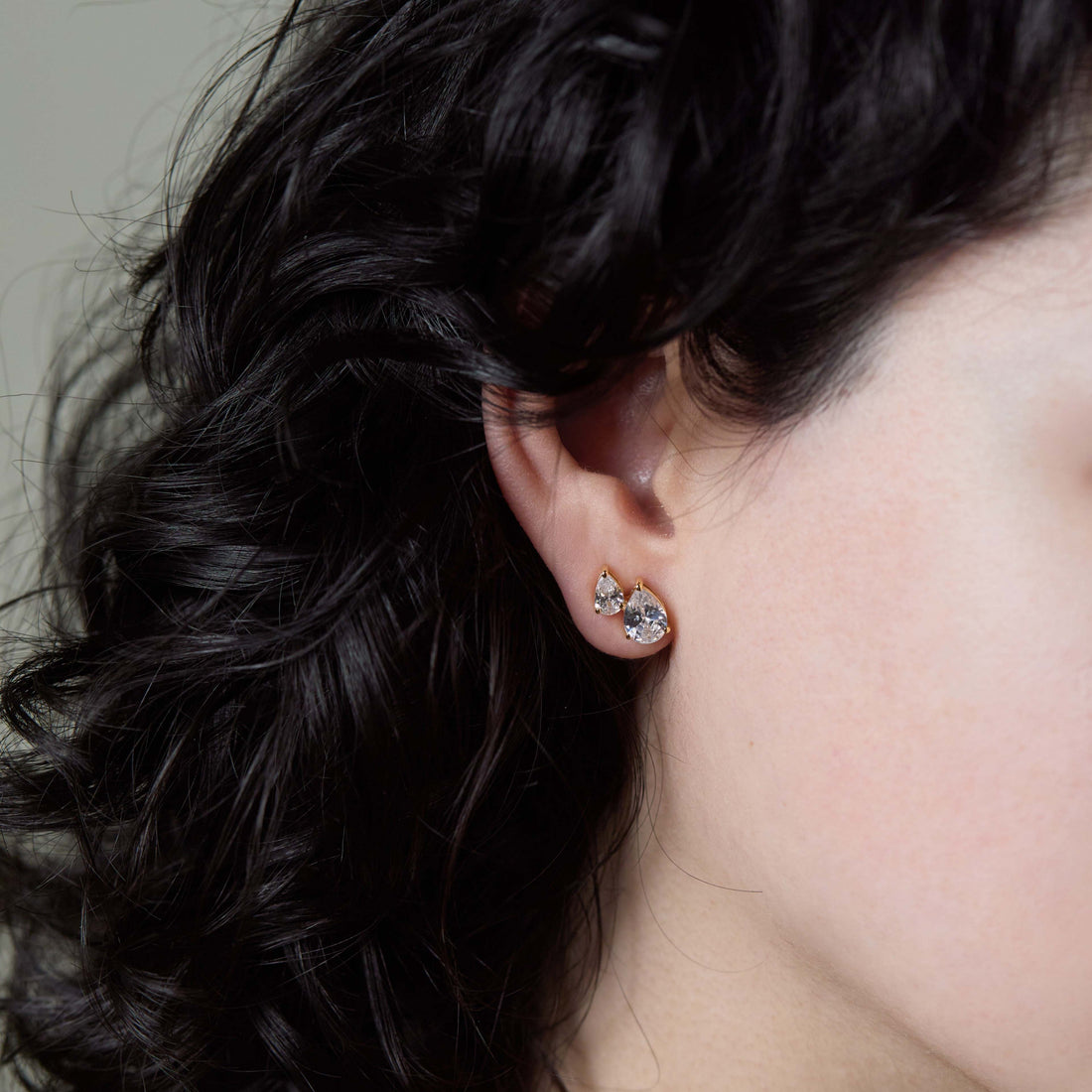 Mila Double Stud Earring with Pear Shaped CZ